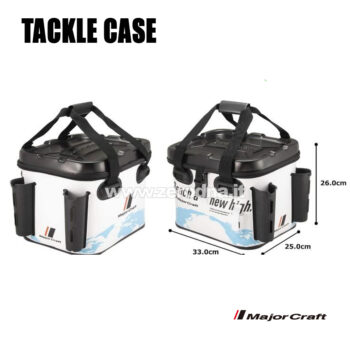 Bakkan in PVC , totalmente impermeabile 49x29x30 cm. Internamente ha un vassoio scorrevole 24×24 cm per riporre attrezzatura , due portacanne esterni più un porta pinza. Davanti ha un ‘ampia tasca porta spoon da 33×13 cm. Cinghia di trasporto compresa, fondo gommato.