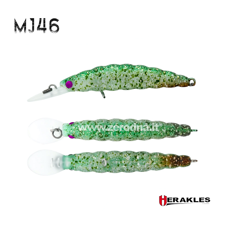 È un jerk di 46mm con due varianti di nuoto, nato in collaborazione con tutto lo staff Herakles. Le difficolta maggiori quando si parla di un piccolo artificiale sono bilanciamento e lanciabilità. Versione HF – Hyper Flaoting ha un wobbling molto accentuato quindi è perfetto con recuperi lenti e lineari, intervallato da jerkate, oppure con recupero stop and go. Versione SSF – Slow Slow Floating è bilanciata con dei pesi in tungsteno ed ha un nuoto leggermente più stretto della versione HF. Grazie a questo sistema di pesi è molto performante nel lancio, ma la sua particolarità è la risalita lentissima, quasi suspending.
