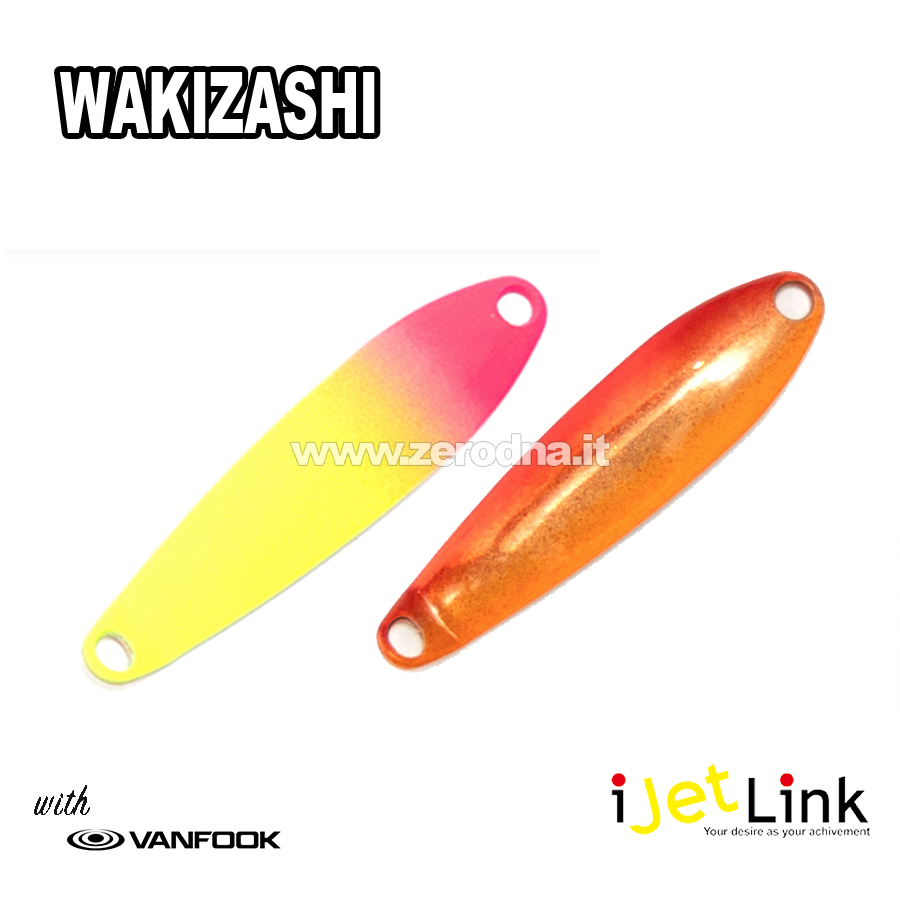 Wakizashi è la novità 2026 I Jet Link . Spoon della lunghezza di 23mm , affusolato e stretto, prodotto in due grammature: 0.5 e 0.8 gr. I Wakizashi montano ami Vanfook SP-21#10 . Il nuoto è stretto , molto ondulatorio, ideale sia con recuperi veloci che lenti. Spoon “poco rumoroso” , la soluzione ideale quando il pesce non risponde alle solite esche . Provate ad usarlo anche con recuperi a canna alta , facendolo lavorare in “diagonale” sfruttando le oscillazioni alternate sia lente che veloci.